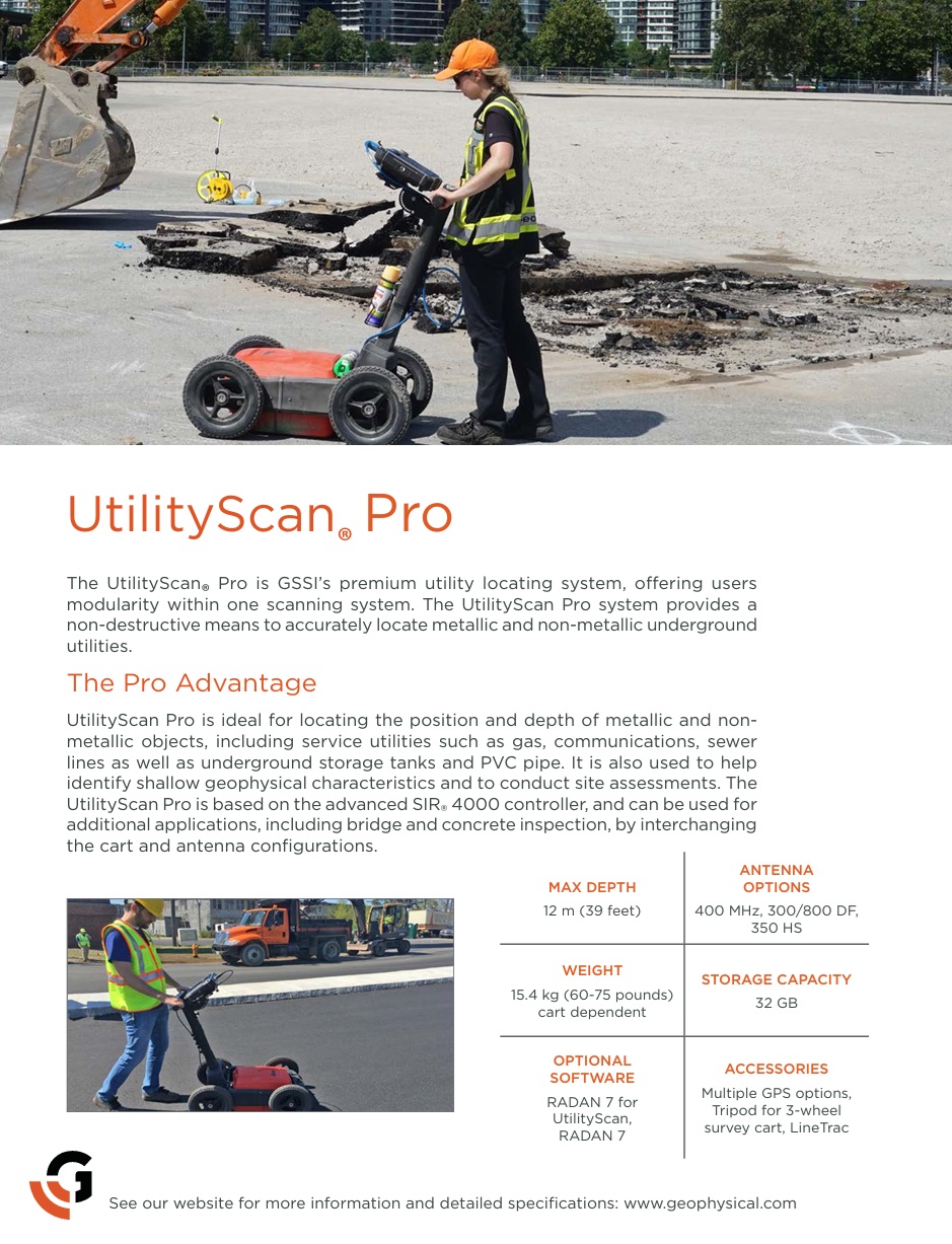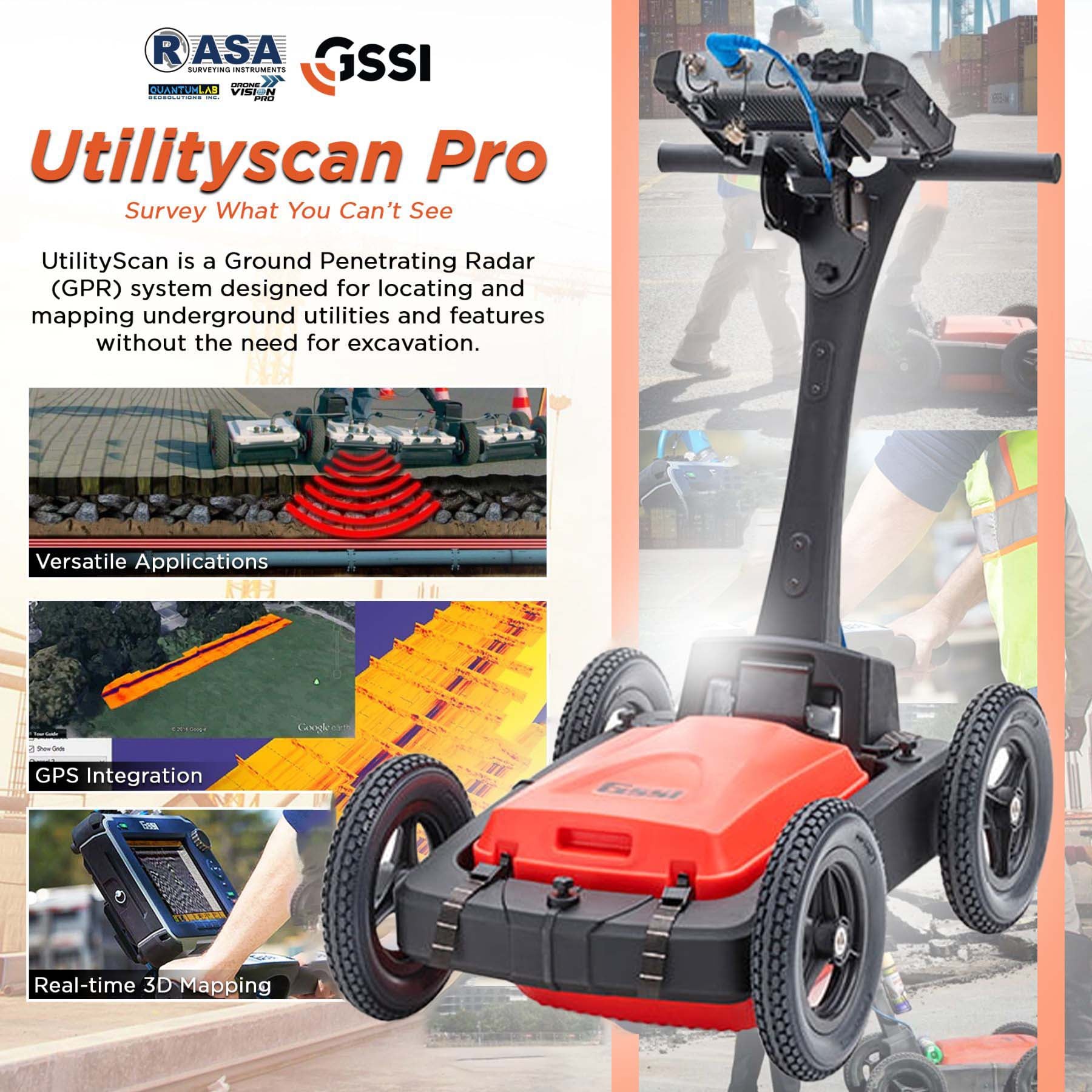 Map underground utilities safely and accurately with the GSSI UtilityScan Pro. This Ground Penetrating Radar (GPR) system enables surveyors, engineers, and infrastructure planners to locate subsurface features efficiently without the need for excavation.