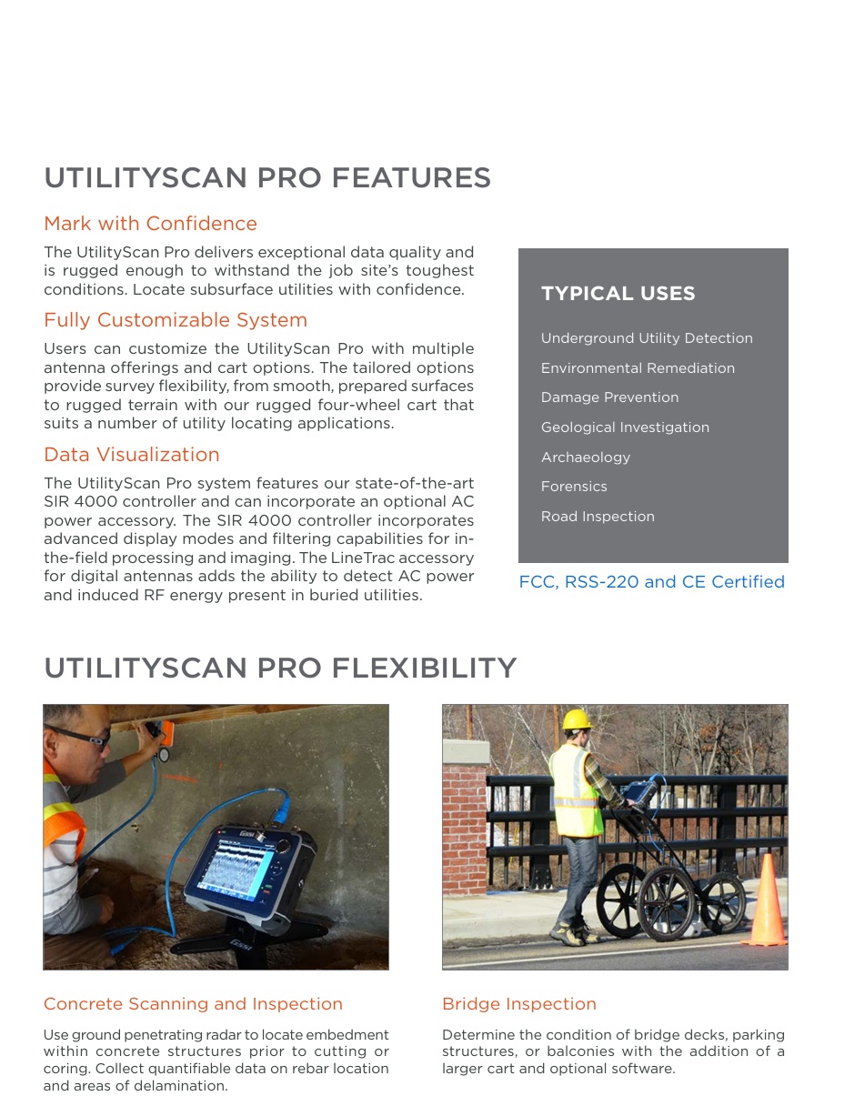 Equipped with real-time 3D imaging, seamless GPS integration, and a large, high-visibility display, the UtilityScan Pro streamlines complex mapping workflows. Designed for rugged field conditions, it provides reliable, deep-scanning capabilities, ensuring your team can assess project sites quickly and accurately.