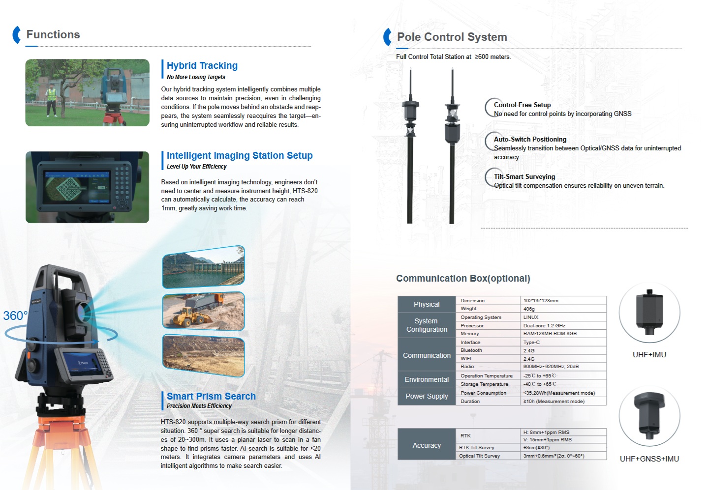 This total station is adaptable for a variety of demanding applications, including construction layouts, topographic surveys, large-scale infrastructure projects, and structural monitoring. Its long-range measurement capabilities and automated features are engineered to reduce field hours across complex sites, from congested urban developments to remote mining operations.